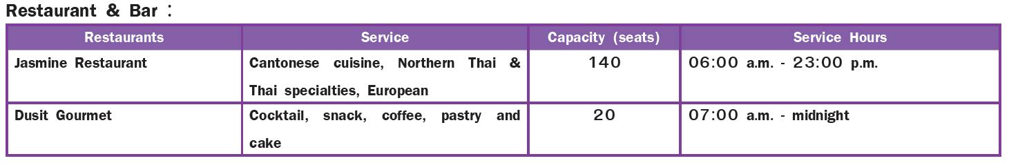 Website : www.dusit.com/dusitprincess/chiangmai, www.facebook.com/DusitPrincessCM