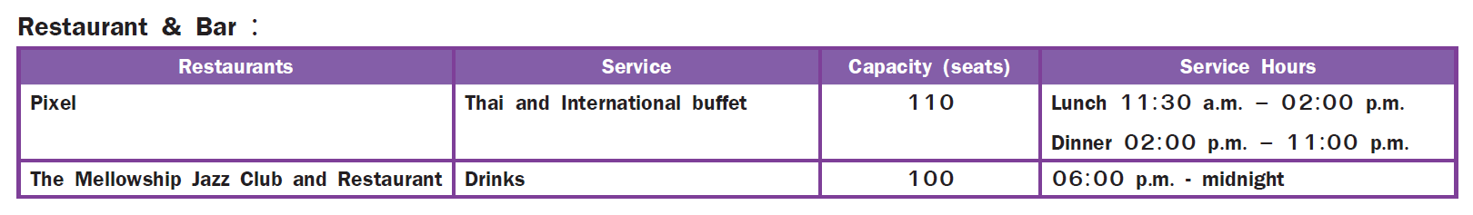 Meeting Rooms : 4 (See page Ibis Styles Chiang Mai)