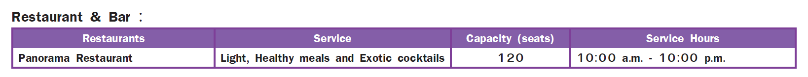 2 Stories swimming pool, Fitness center, Mountain bikes, Boutique shop, Library for books/DVD/CD, Hill tribe, Terrace, Yoga studio, Laundry service, Tours and ticketing, Spa (12,000 sq.m.) Jogging track, Indoor games, Table tennis, Petanque, Boxing glove & sack, The Kid’s Play Ground, Viman shop, Organic Farm