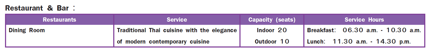 Pickup service from the hotel and airport (Please contact the staff prior to arrival.) Room service 06.30 a.m. – 14.30 p.m., Concierge, Laundry and dry cleaning, 24-hour CCTV for security, A 2-minute walk nearby parking lot (free of charge), Oasis spa with free shuttle service 10.00 a.m. – 10.00 p.m.