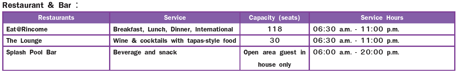 Facilities: 24-hours use of room, Breakfast whenever wherever, International and local call at cost, Gym, Rooftop swimming pool, all day dining restaurant, Wine bar with library, Pool Bar, Dining room service, Free bikes for all guests, Hi-speed internet (Wi-Fi) access, Daily housekeeping service, Laundry valet service, Sightseeing and transport arrangement