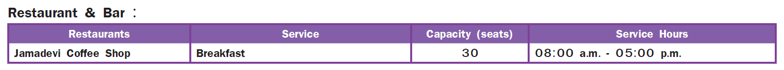Facilities: Free bicycle service, Taxi service, Garden for Outdoor Event: Wedding & Party: Maximum 150 guests.