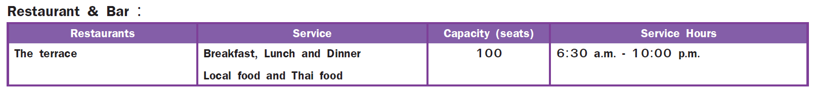 Meeting Rooms : 1 (See page Bell Villa Pai Resort)
