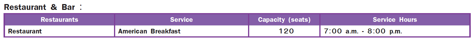 Wi-Fi, Parking, Breakfast service, Conference Center, Airport shuttle, Laundry service, Meeting room, House riding, Swimming pool with children\’s pool, Traditional Thai massage, Restaurant, Bicycle tours and rental, Tours counter, Limousine service, Airport transfers, Shuttle van service, Visa and MasterCard accepted