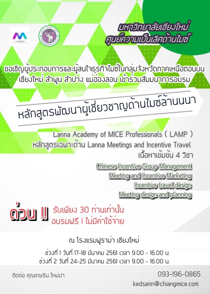 ‘Meetings and Incentive Travel’ Published March 14, 2018 at 429 × 600 in LAMP | Lanna Academy of MICE Professionals ‹ Return to post Leave a comment Cancel reply Δ This site uses Akismet to reduce spam. Learn how your comment data is processed.