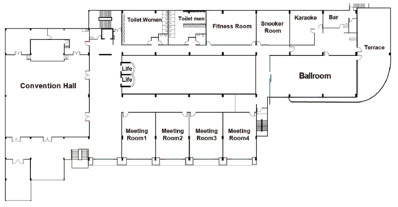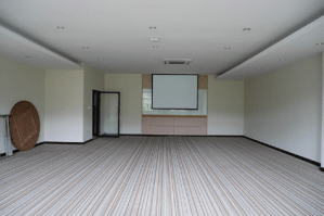 Audio, Microphone, Projector LCD + Screen, Projection Screen, Table, Chair, Sofa, Podium
