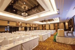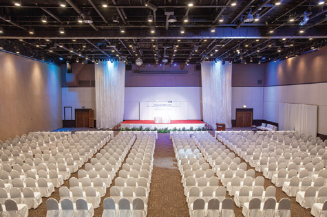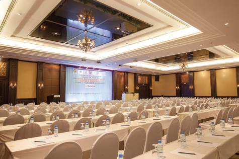 Projection screen / Overhead projector, Laser pen, Audiovisual projector, Decorative light, Fog lamp, Paper pencil, Microphone, Podium, Message on stage, Drinking water, Parking 450 cars