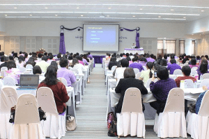 LCD Projector, Notebook, Podium, Audio system, Microphone, 3D projector, White board, Message board on stage, Flower decorate