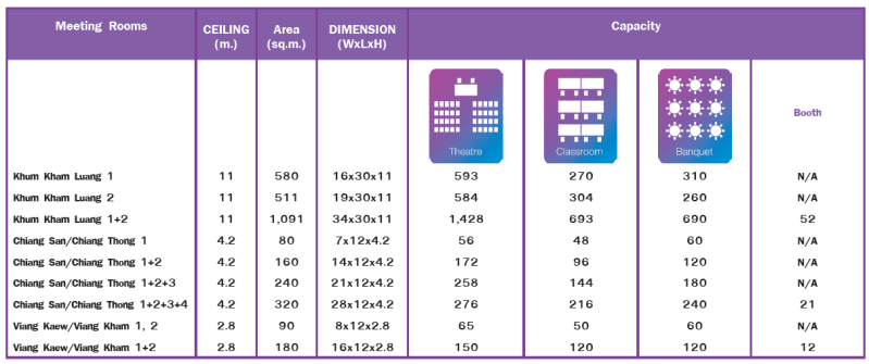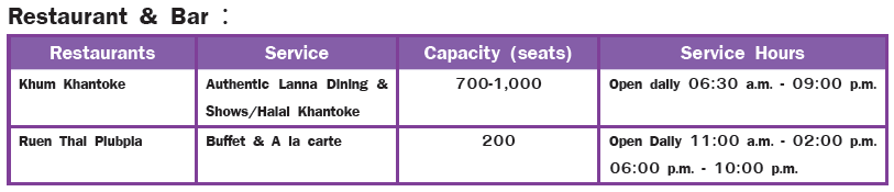Catering, Khum Kham International Convention Complex is a place for all your MICE and social function. Decorated in Luxury Lanna Style and fully eqipped with stateof-the-art technology, serviced by expereinced team, all of which the provide the ultimate experience for every clients