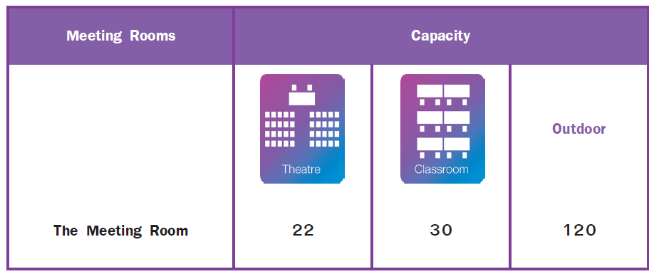 Flip Charts, Whiteboard, Slide Projector, Room Wi-Fi, Seminar 30-50 people, We can also provide lunch,