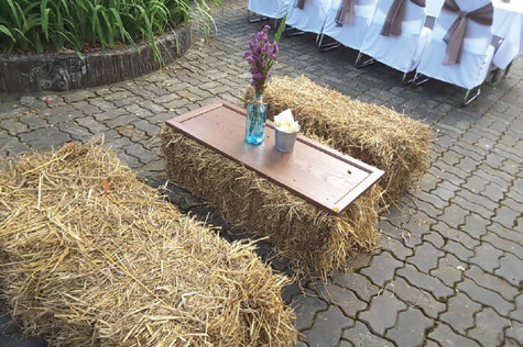Customized table set up, Bottled water & stationery
