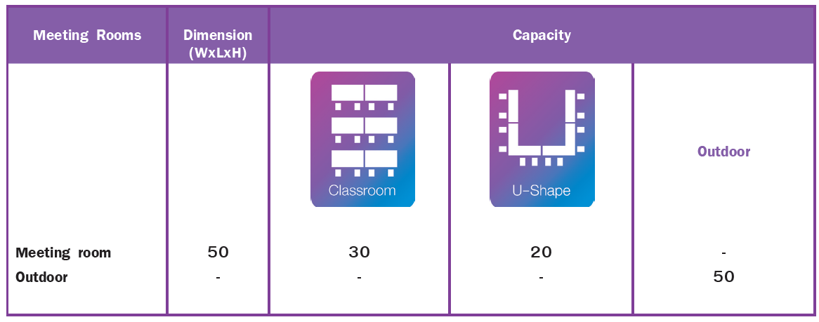 The room features an overhead Wi-Fi Projector with ceiling down screen, P.A. sound system, Wi-Fi internet &